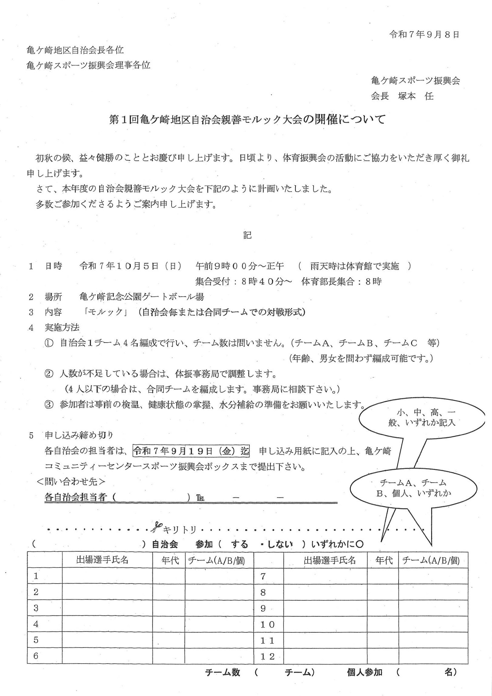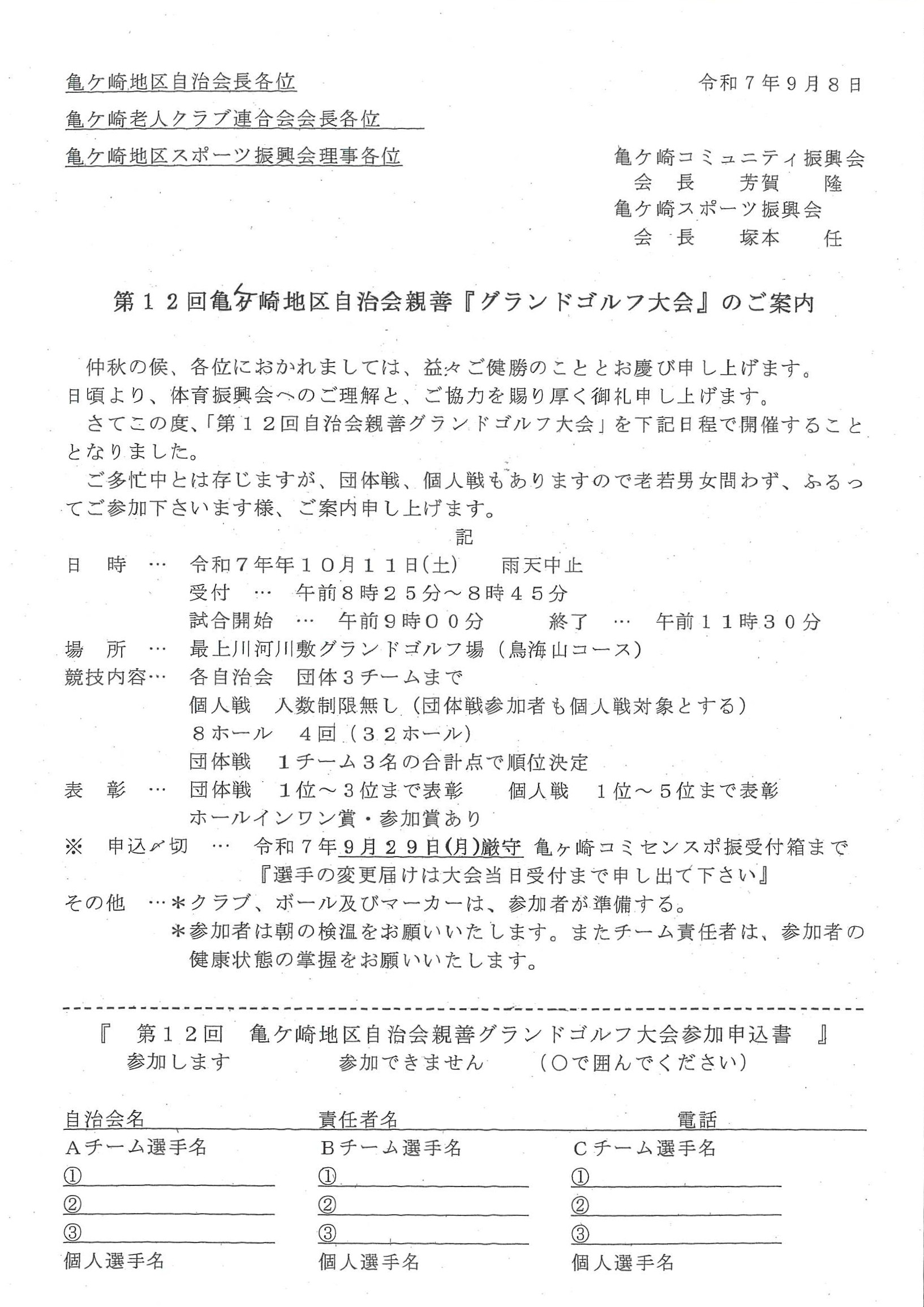 第12回亀ケ崎学区自治会親善大運動会 第12回亀ケ崎学区自治会親善大運動会情報ページの二次元コード 第1回亀ケ崎地区自治会親善モルック大会 令和7年10月5日 9:00~ 第12回亀ケ崎地区自治会親善グランドゴルフ大会 令和7年10月11日 9:00~